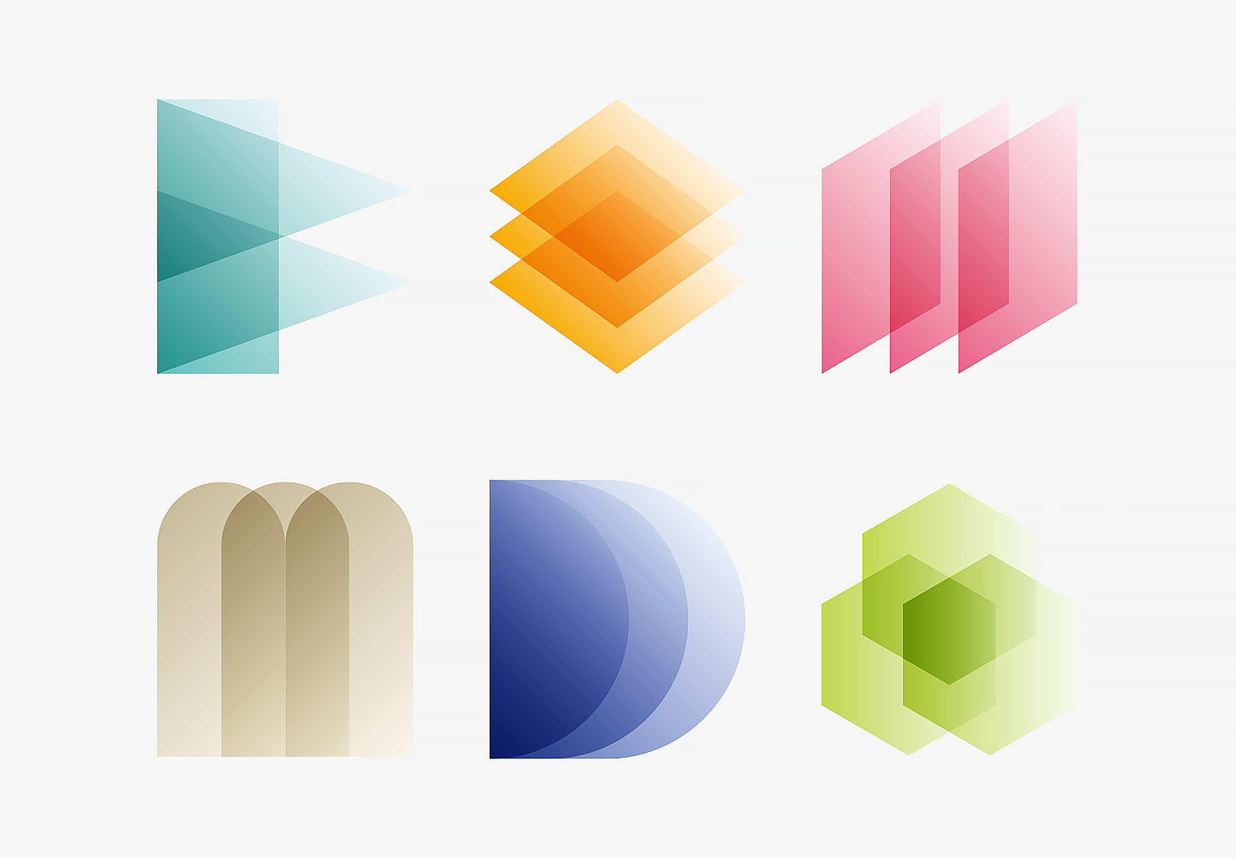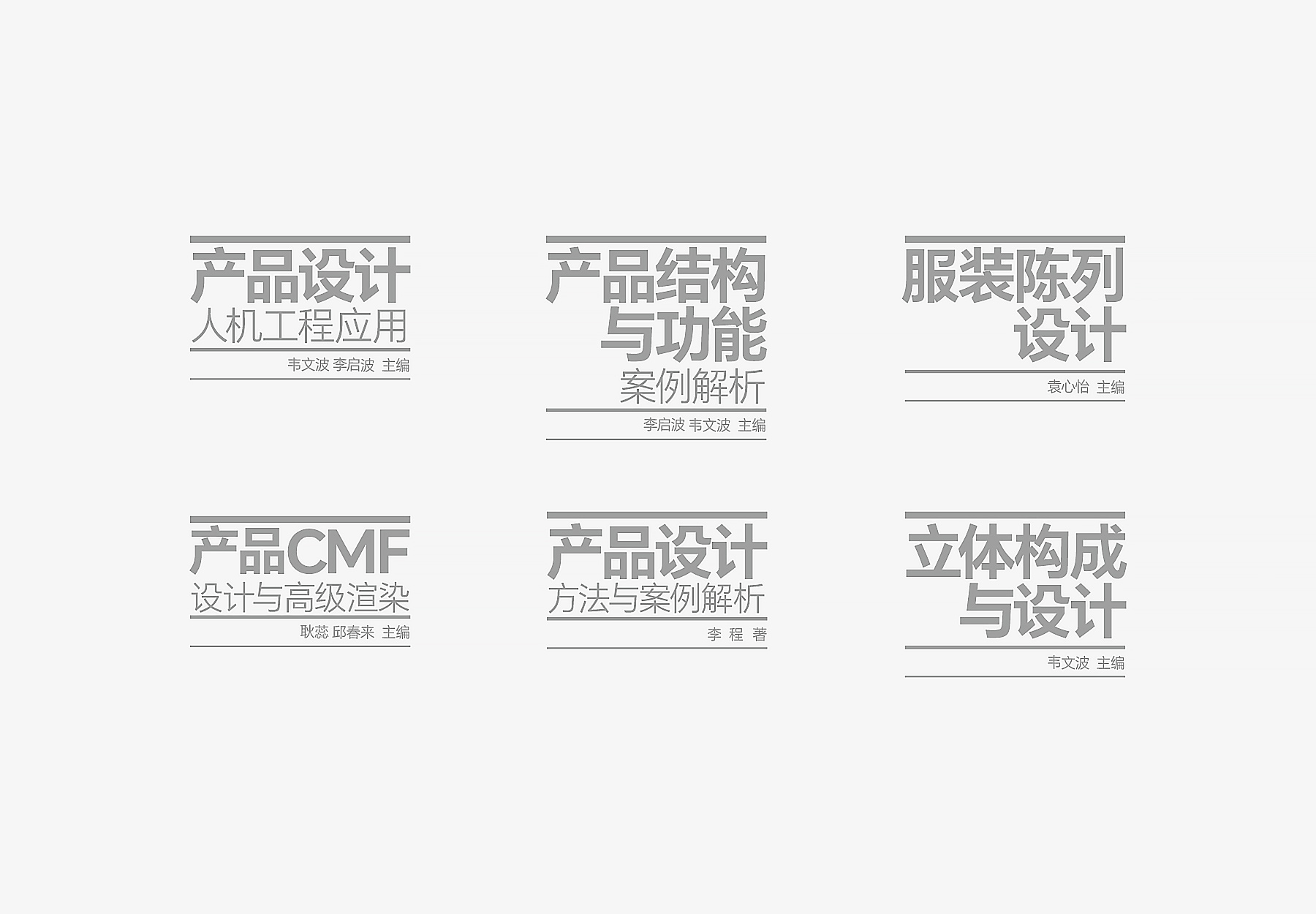 产品设计人机工程应用,以不同角度的视觉变化表现人机工程;产品结构与功能案例解析,以多层变化剖析表现产品结构与功能;服装陈列设计,以纵向阵列表现服装陈列属性;产品CMF设计与高级渲染,以表面叠加及凹凸变化表现CMF和告诫渲染;立体构成与设计,以平面六边形叠加立体效果表现立体构成。