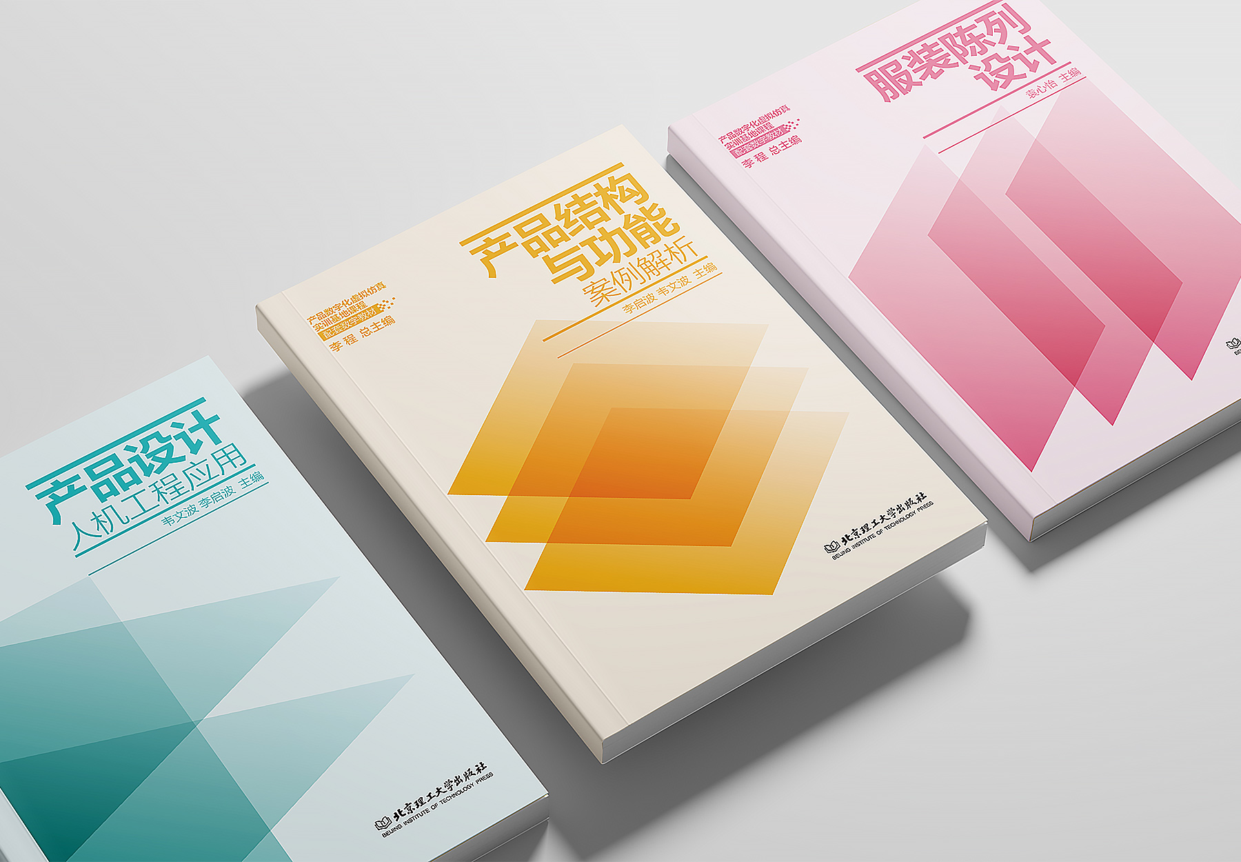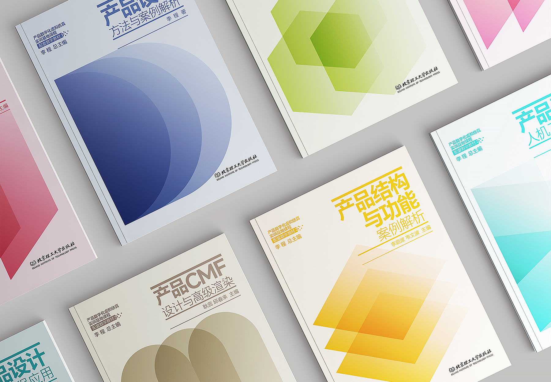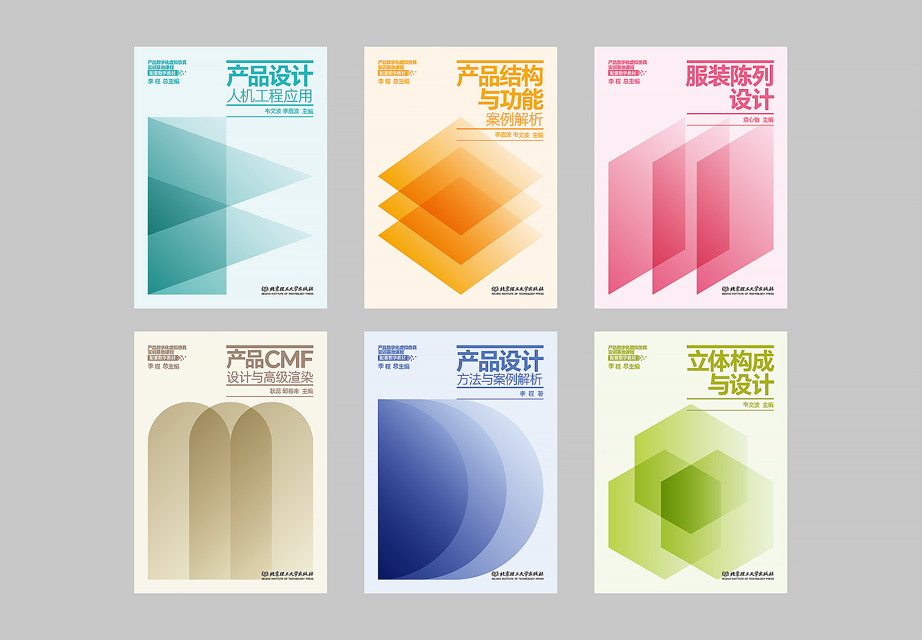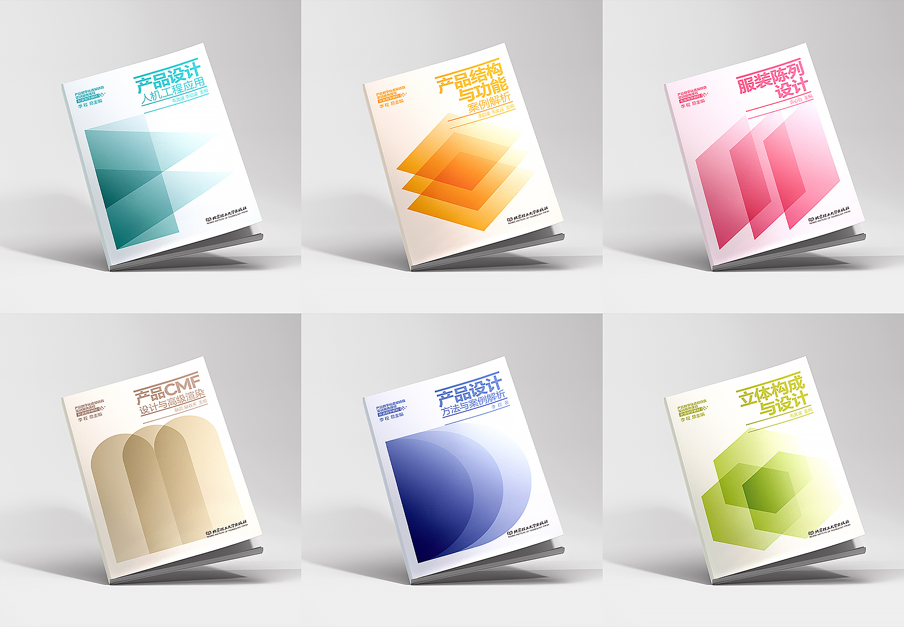 教材书籍封面设计遵循了单本书籍封面信息排版以右对齐的版式为主部分信息根据具体内容及层级关系微调;单本书籍封面配色以同色系双色配色为主(除出版社信息等),图形部分以深浅渐变叠加呈现;单本书籍封面图形元素设计以抽象几何图形呈现,结合色彩叠加形成变化效果。