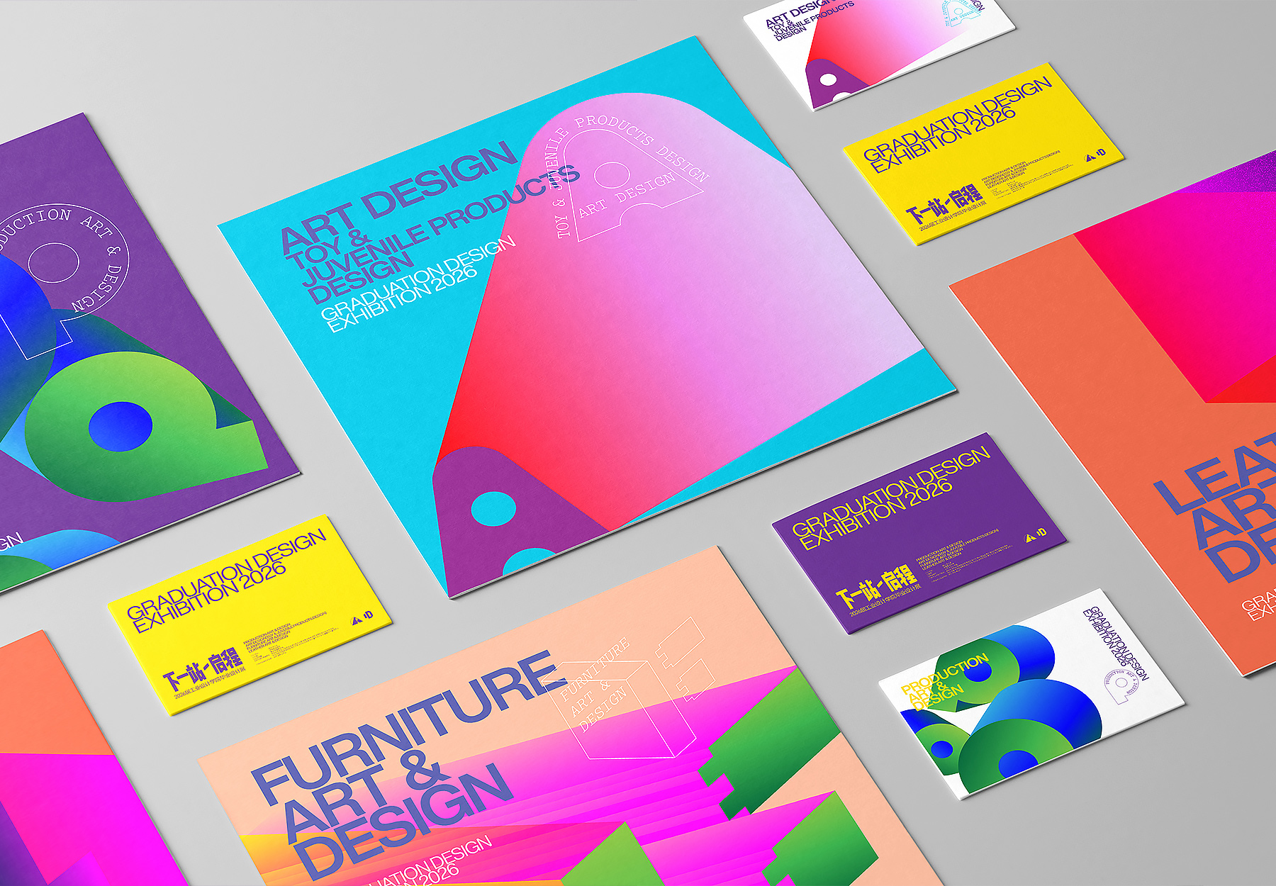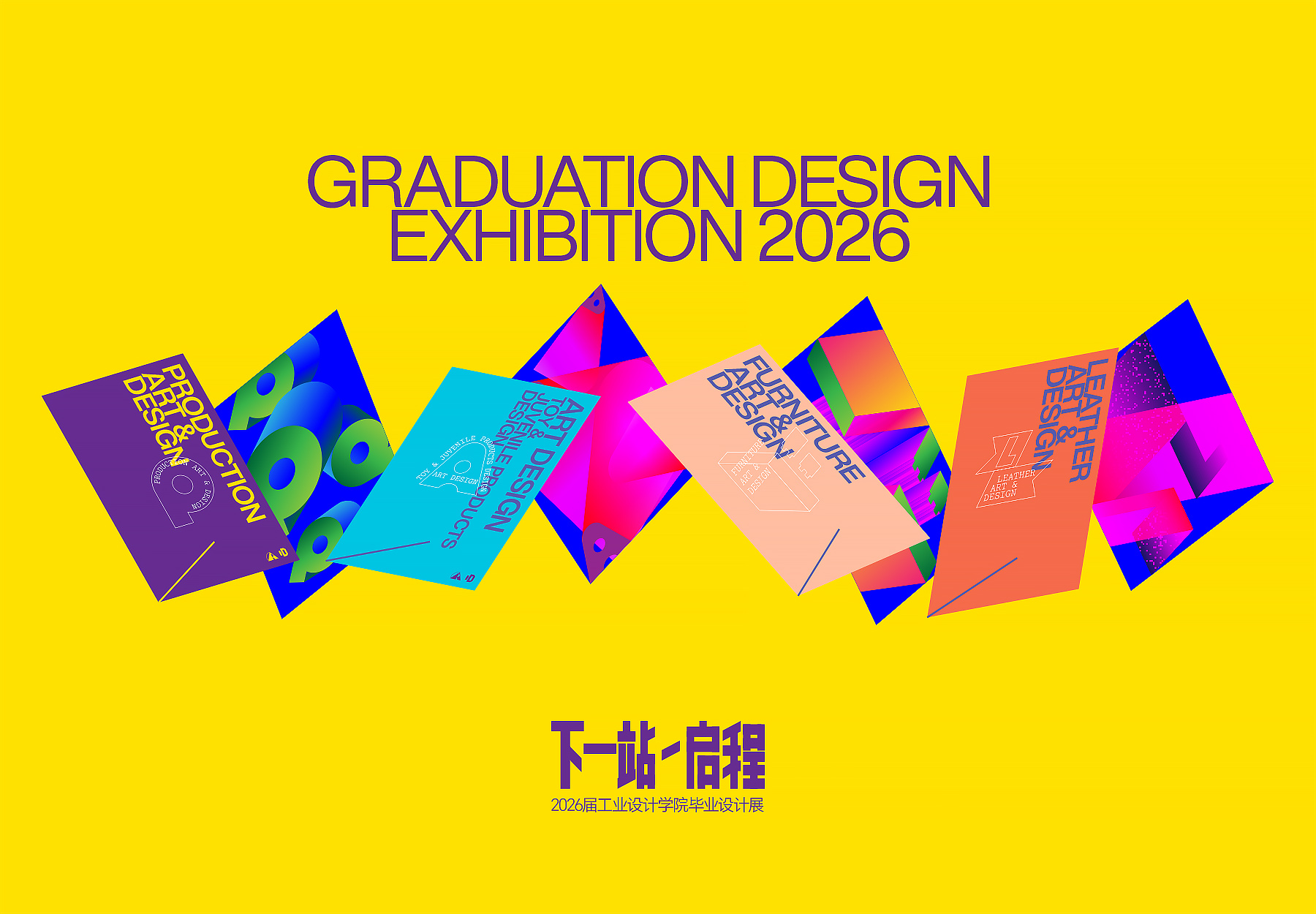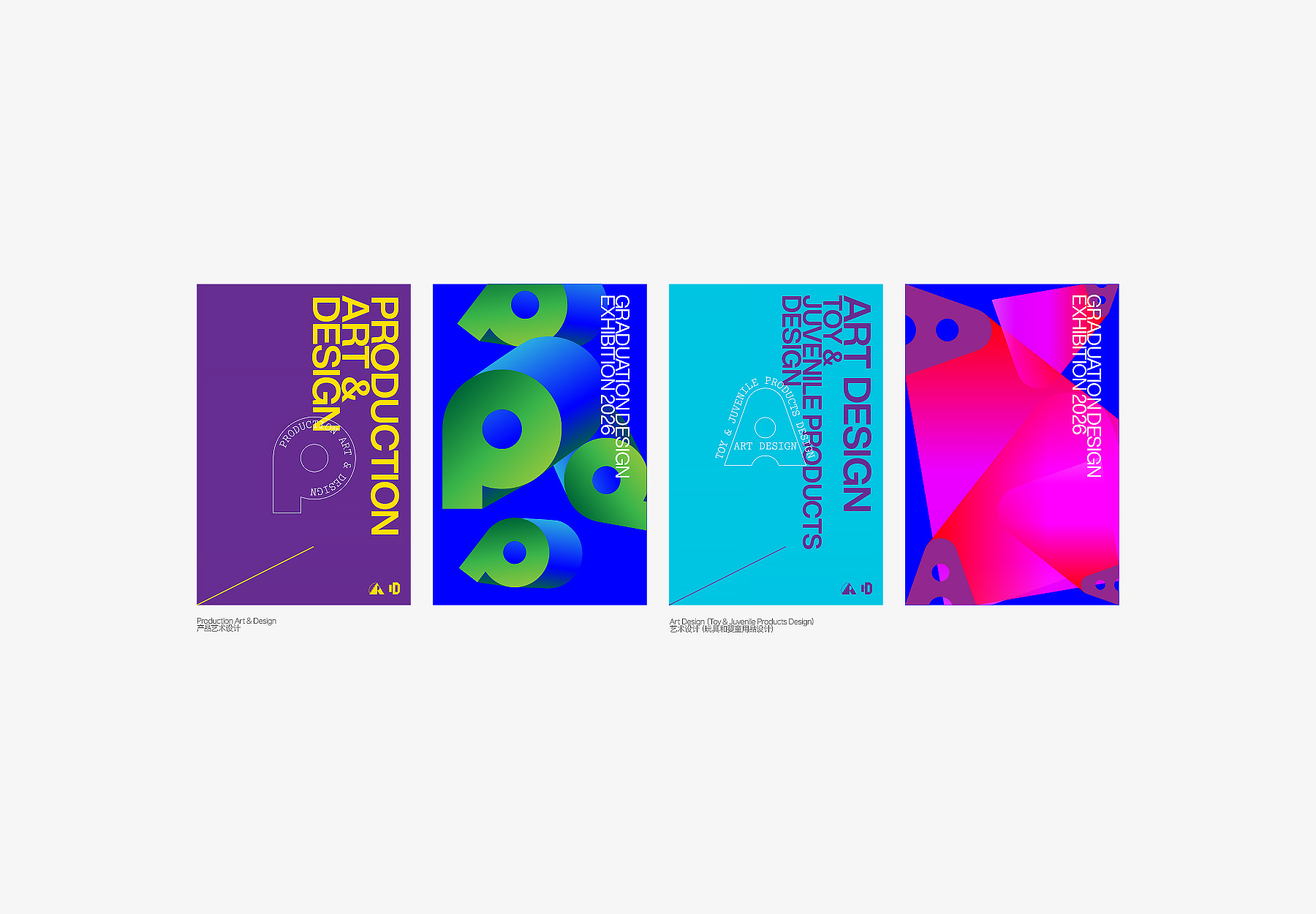 整体而言,本次毕业展视觉设计通过对主题字体的精神表达、专业图标的系统构建、四个专业图形的差异化塑造以及展板规范的理性规划,成功营造出一个兼具学院气质、专业深度与青春活力的视觉场域,助力2026届毕业生以最具仪式感的方式,完成从校园到未来的“启程”。
