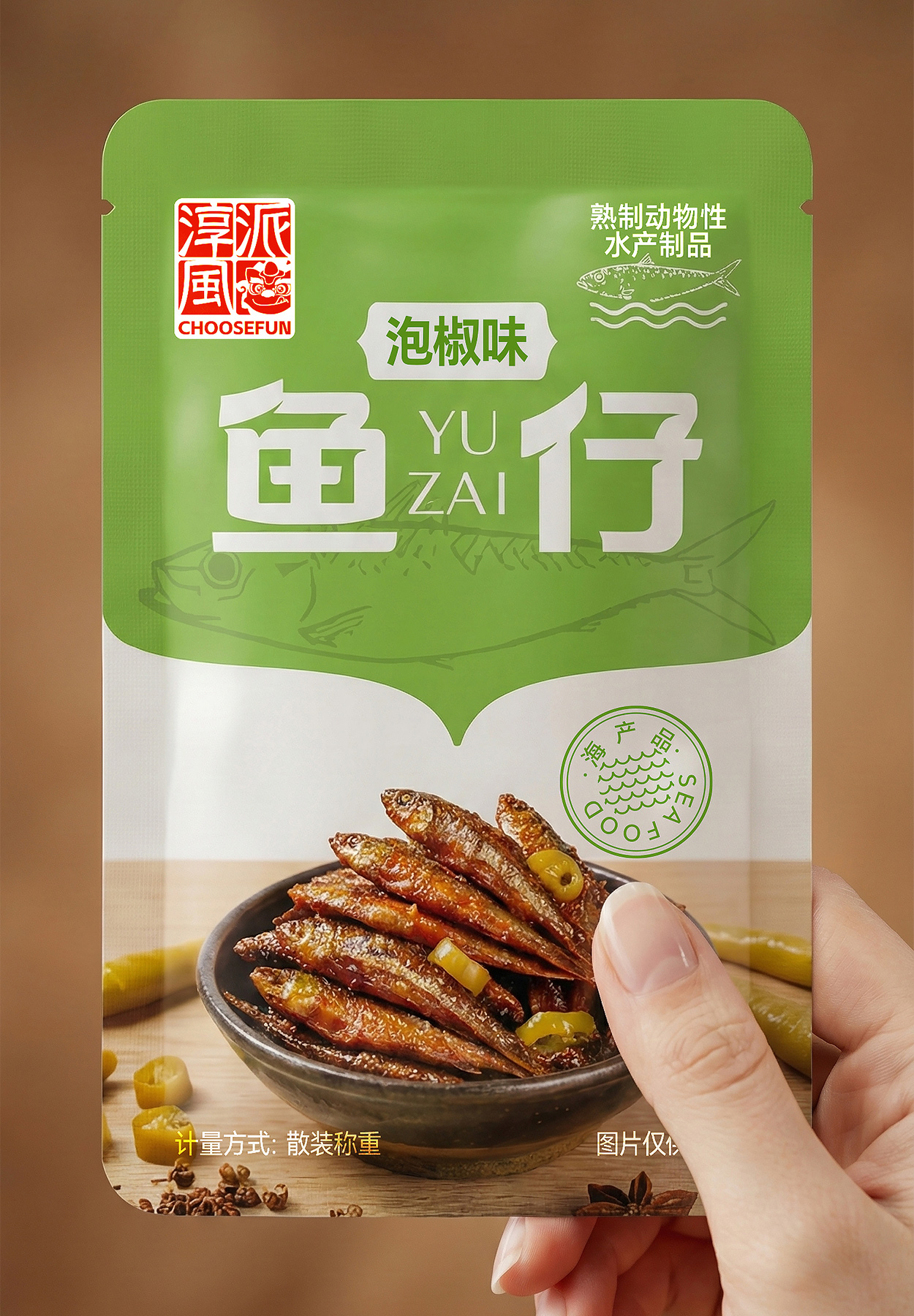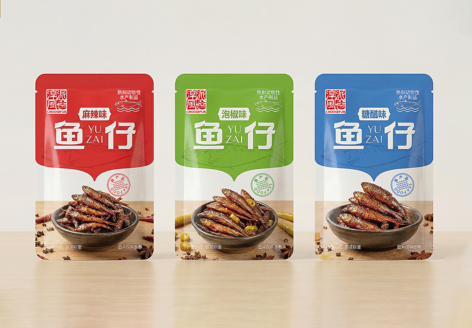 在“鱼仔”系列包装设计中,我们从产品核心概念出发,围绕“鱼”的意象展开整体视觉构建。首先,对产品名称进行了专属字体设计,笔画融入了灵动的曲线处理,呼应“鱼”的流动感,在保持辨识度的同时传递出活泼、年轻的品牌性格。