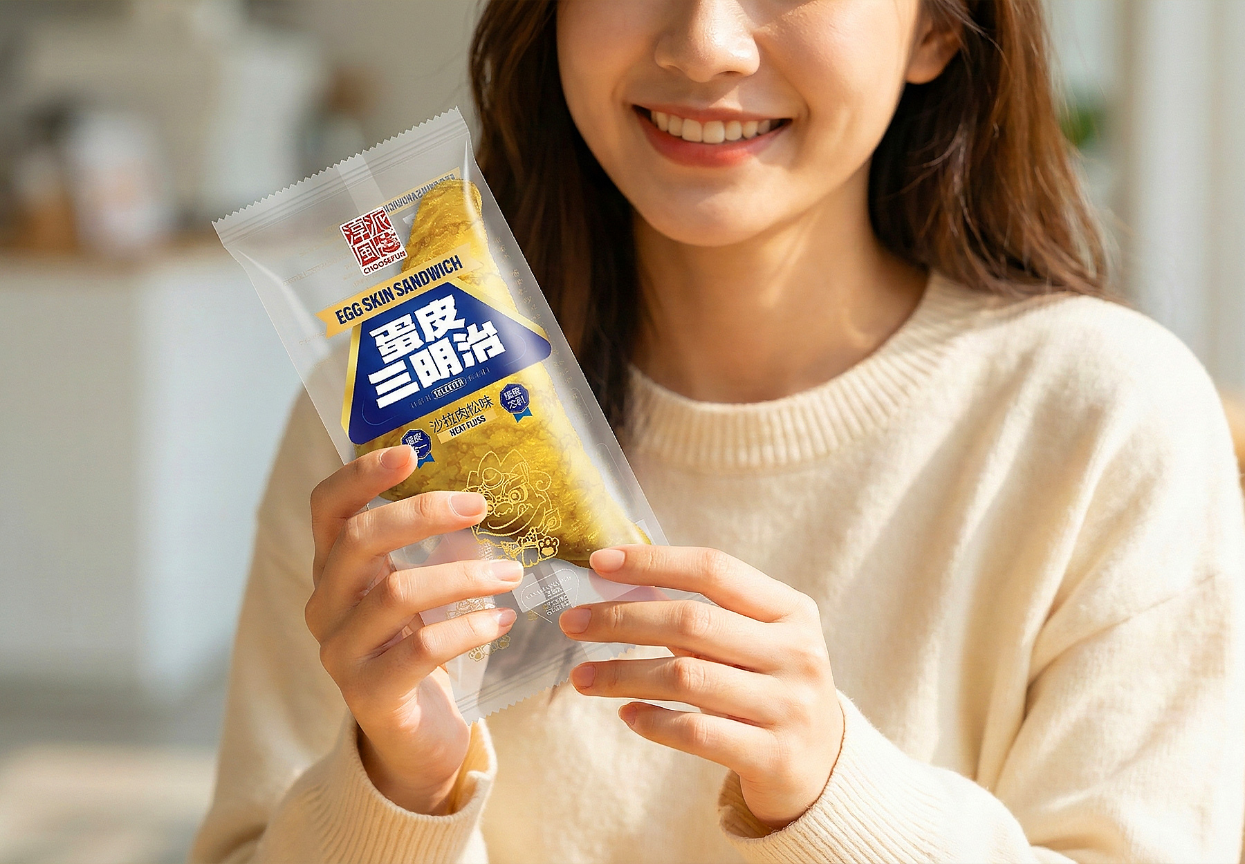 基于“蛋皮三明治”产品名称与独特的三角外观,我们构建了一套兼具辨识度与品质感的包装视觉系统。